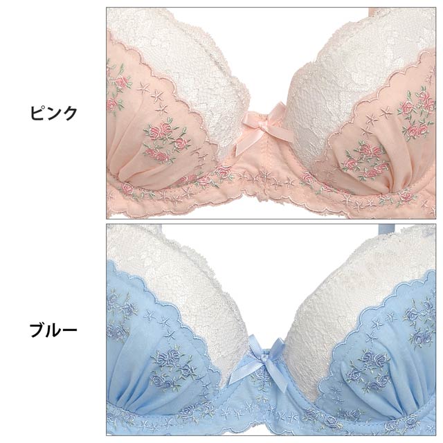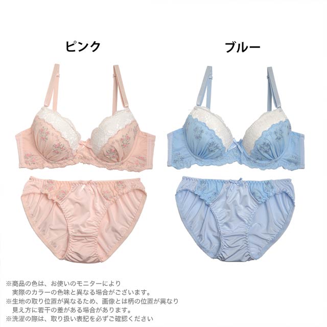 ナチュラルプチローズ刺繍ブラジャー&フルバックショーツ[プチプラ]