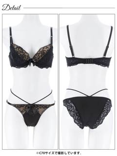 【3点セット】レース育乳脇高ブラジャー&バック透けフルバック&Tバック