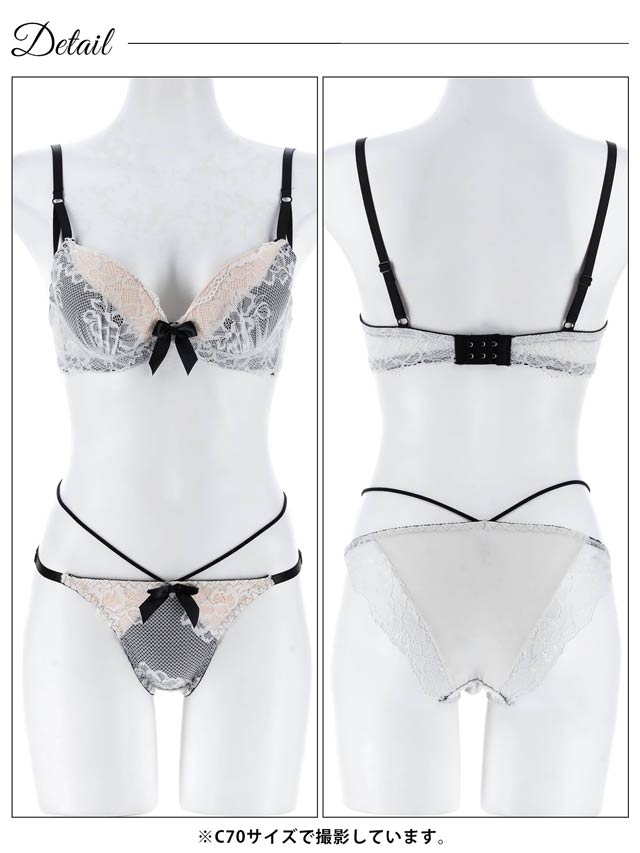 オールレースカットストリング育乳脇高ブラジャー&バック透けフルバックショーツ
