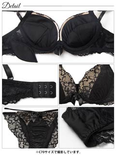 フロレゾンローズレース育乳脇高ブラジャー&サイド紐バック透けフルバックショーツ