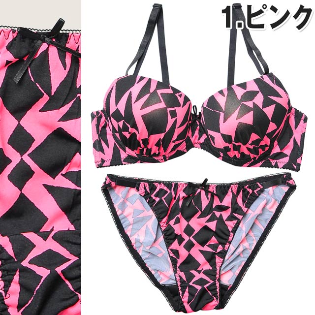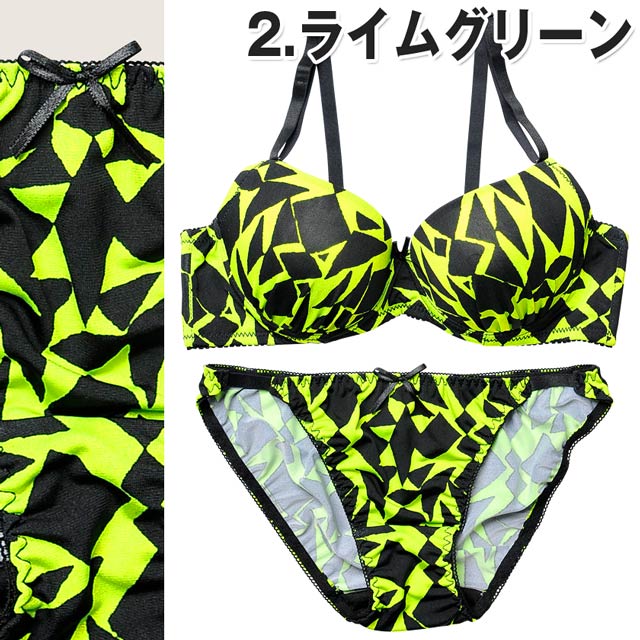 ネオンカラー幾何学柄ブラジャー&ショーツ/SEXY