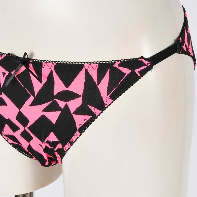 これからの時期にピッタリ♪お目立ち度100%のネオンカラー×幾何学柄の派手ブラが登場!!ストレッチ素材を使用したカップはアウターに響きにくいから、ピタっとした洋服でも着やすいのが嬉しい♪ショーツsideはSEXYな1本ラインで華奢な腰元を演出してくれます♪ワザと透けさせて魅せブラとして着ても◎!!(^^)派手可愛いブラをオシャレに着こなして注目されちゃおう+*.☆☆