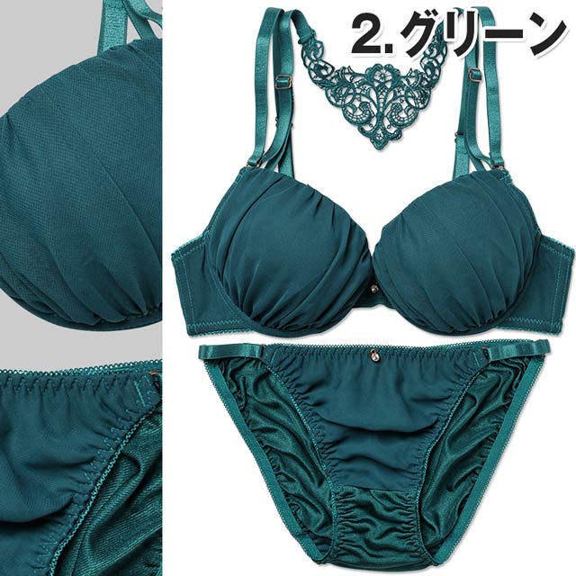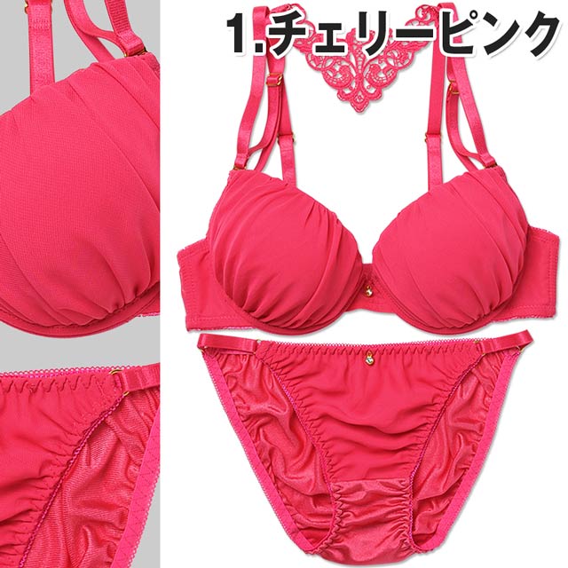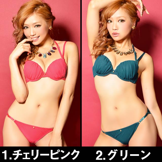 シフォンはギャザーを寄せてふっくらとしたバストをMake★ホルターストラップには刺繍模様を取り入れ、後姿が際立つ可愛さ★:*キラキラチャームが胸元、ショーツそれぞれの単色に輝きを添えます♪ショーツサイドの