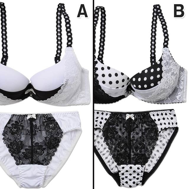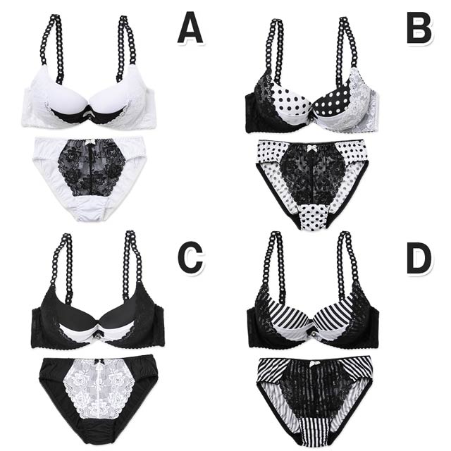 モノトーン柄×レースブラジャー&ショーツ/SEXY