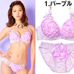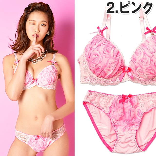 甘いカラーにエロティックな薔薇柄がSEXYなデザイン☆。*:いたるところにプチリボンを飾り付けて可愛さもプラス♪人気の高いシフォン×レースの組み合わせが女らしさをUP↑さらに、しっかりとしたワイヤーとWパッドの最強タッグが、バストをググッと寄せ上げ、魅力的な谷間を作ります!!ショーツサイドは透けレースを使用して、チラッと見える素肌が彼をドキッとさせること間違いなし☆