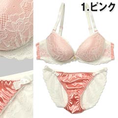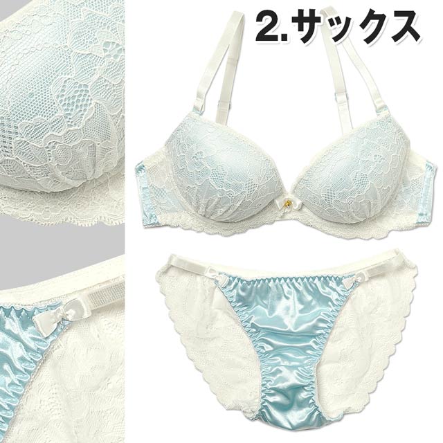 サテン×whiteレースブラジャー&ショーツ/CUTE