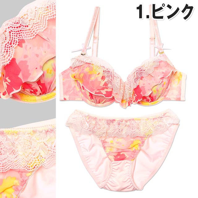 ぼかしflowerシフォンブラジャー&ショーツ/CUTE
