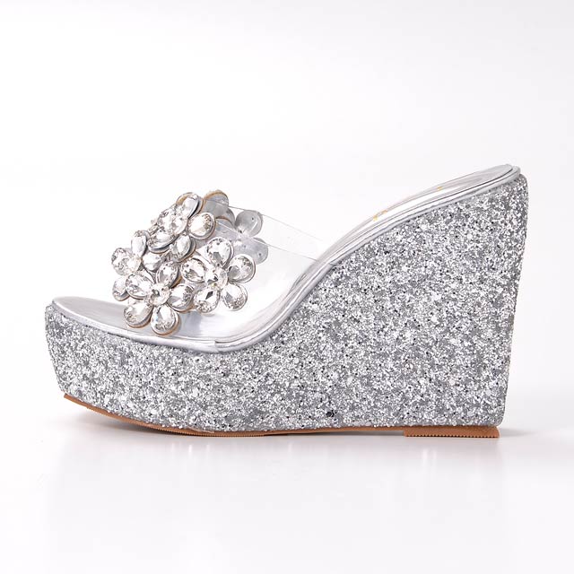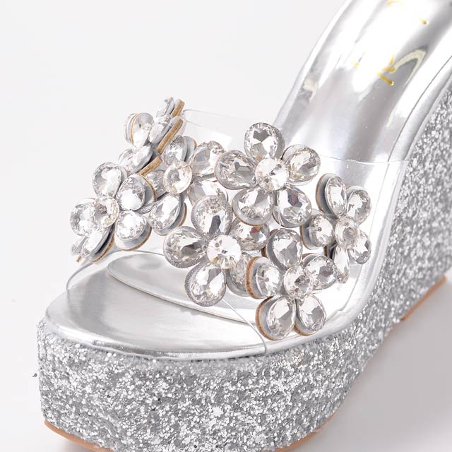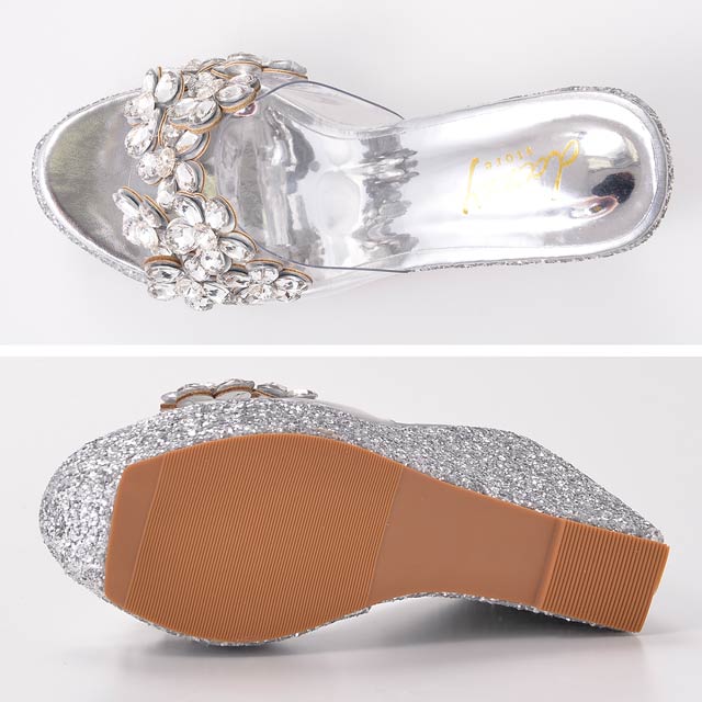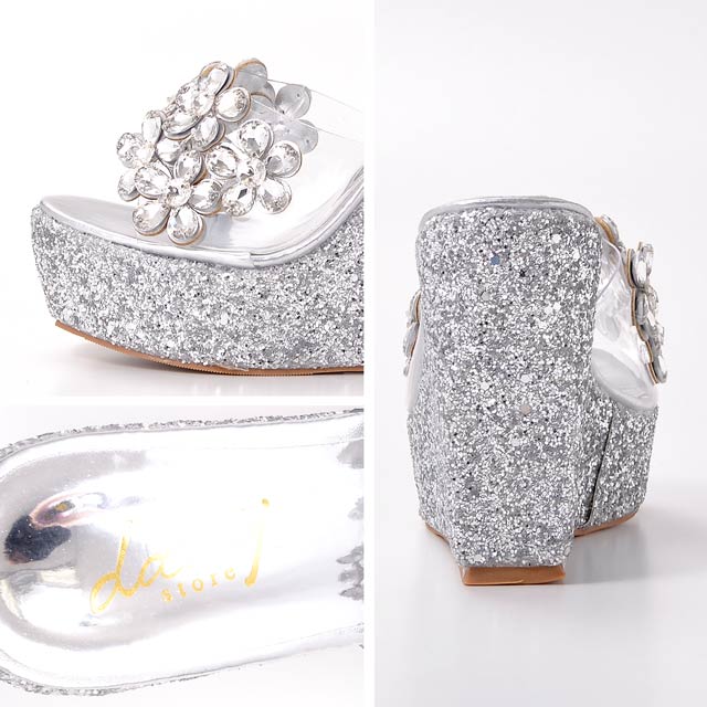 [13cmヒール]フラワービジュー付ラメグリッタービーチサンダル[4サイズS/M/L/LL]【dazzy beach/2019夏小物】
