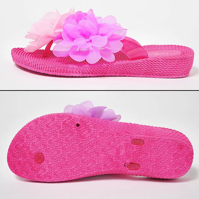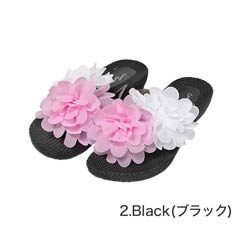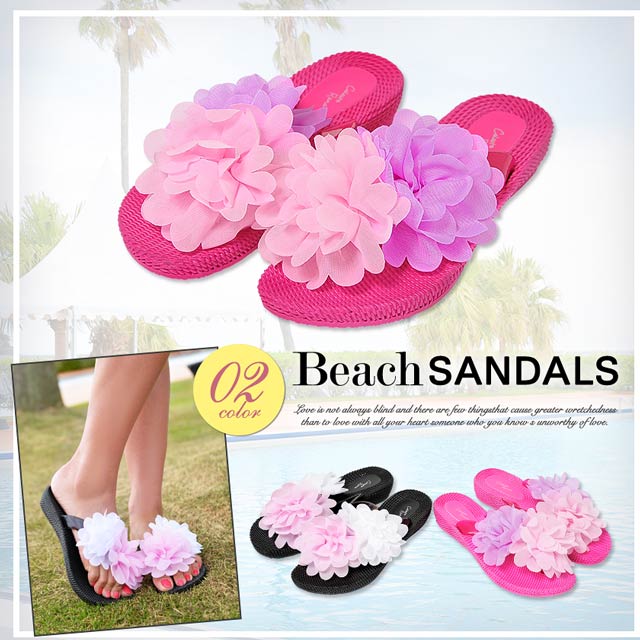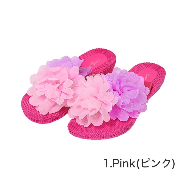 ふわふわ配色フラワー★ローヒールビーチサンダル