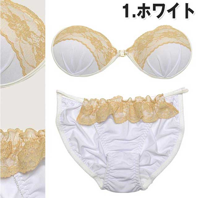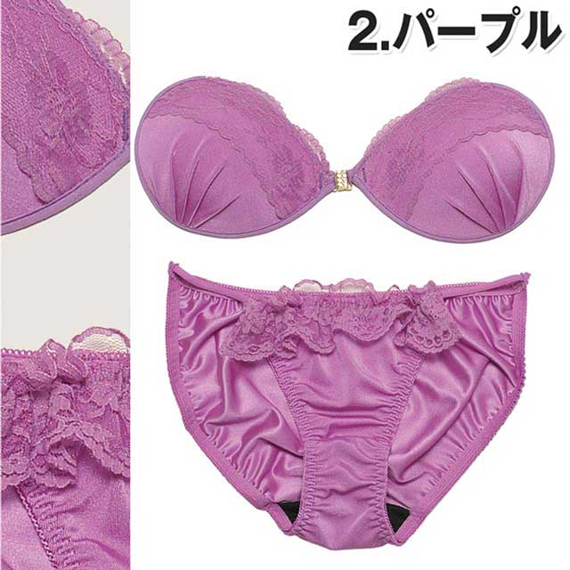 オールレースカットストリング育乳脇高ブラジャー&バック透けフルバックショーツ