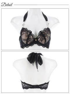 オールレースカットストリング育乳脇高ブラジャー&バック透けフルバックショーツ