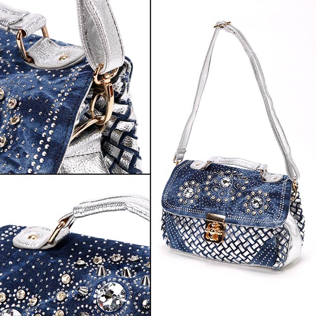 [DRWオリジナル][Cheri a la mode][2way]スタッズビジュー付デニムショルダーバッグ