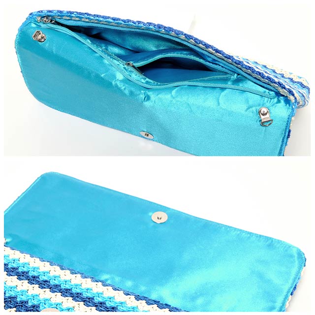グラデーション風ボーダー柄がトレンド感満載の夏にピッタリなクラッチバッグ!!水着とも合わせやすい生地はビーチにも持っていけるのでこれからの時期ヘビロテ間違い無しです!取り外し可能のチェーンがついているのでショルダーにもなる2wayタイプでファッションに合わせて使えますよ♪♯゜缶バッジやワッペンなどでアレンジしてもカワイイのでオシャレさんには必須なアイテムです!!