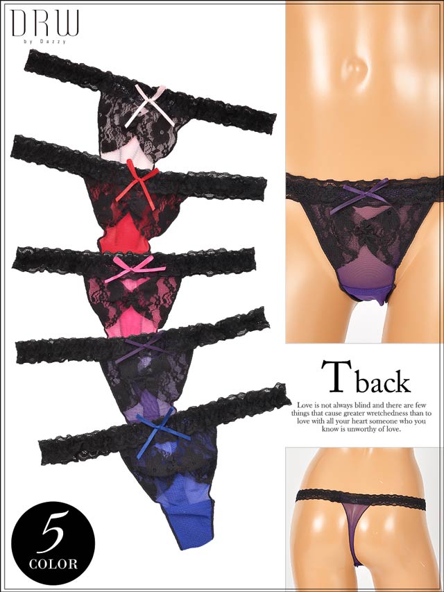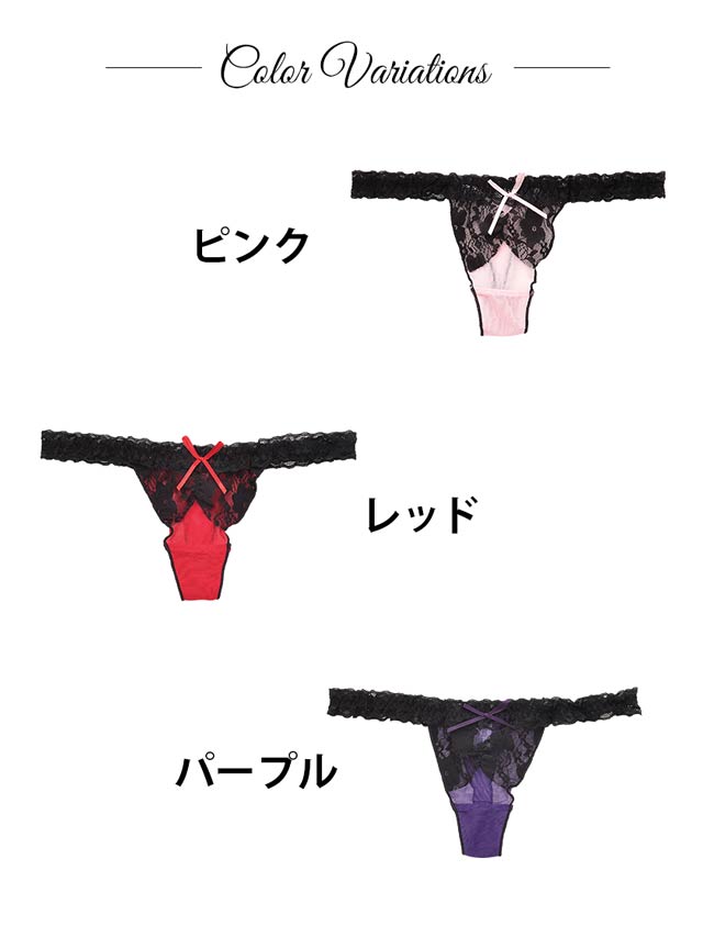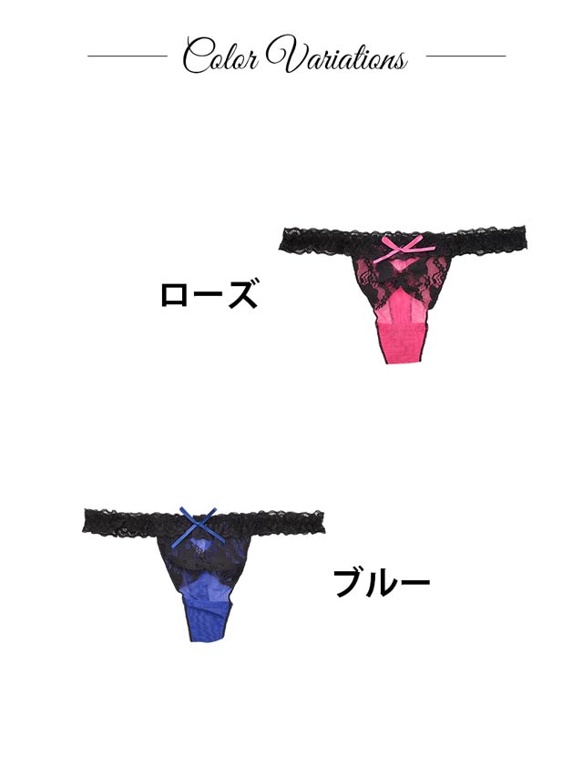 【Reinest】シックレーシィコードリングブラジャー&バック透けTバックショーツ