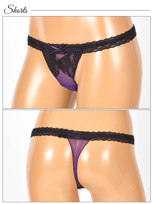 オールレースカットストリング育乳脇高ブラジャー&バック透けフルバックショーツ