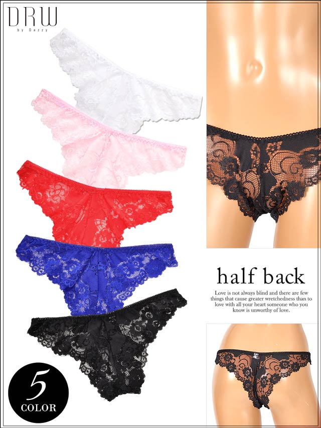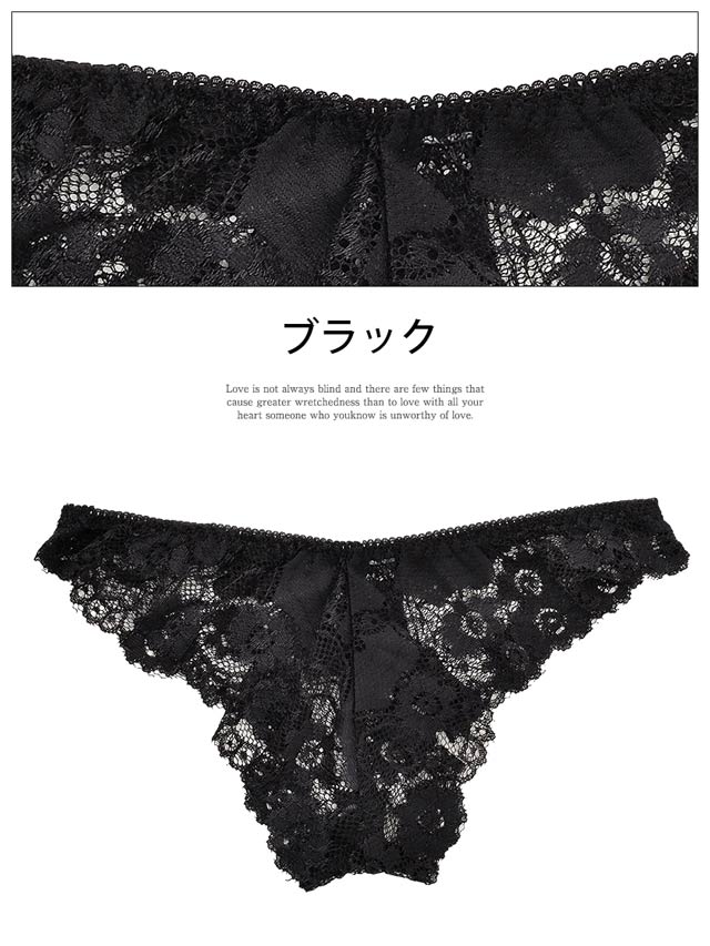 オールレースカットストリング育乳脇高ブラジャー&バック透けフルバックショーツ