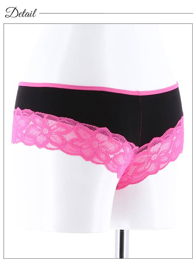 バイカラーが色っぽいハーフバック透けショーツ☆足口は大輪Flowerのレースになっているのが、とってもオシャレ!!『Tバックは興味あるけど、いきなり挑戦するのはまだ不安・・・』という子には、このハーフバックがオススメ♪フルバックより浅く、Tバックより食い込み感が気にならないデザインになっています!お洋服にショーツのラインが響きにくいので、ヒップラインを綺麗に見せてくれますよ★