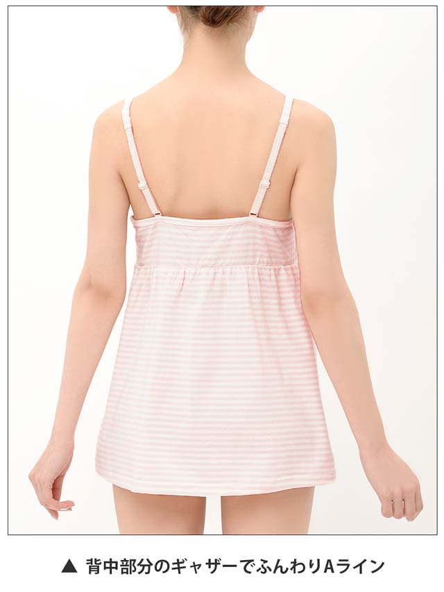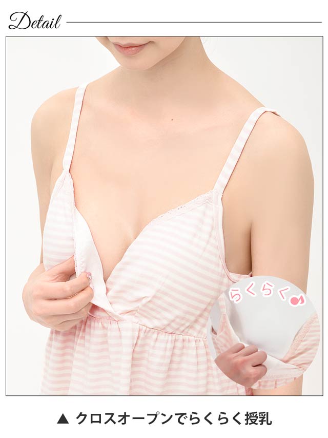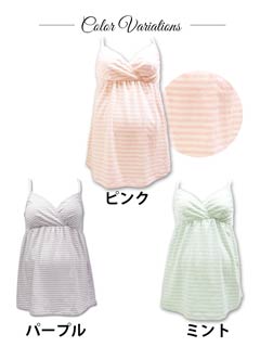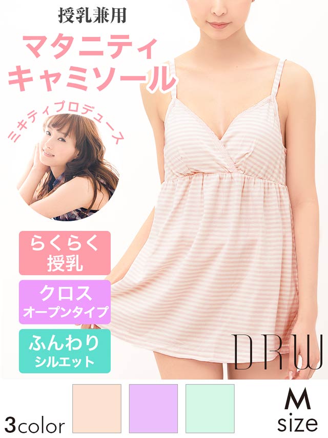 若いママ世代の憧れ的存在!ミキティこと藤本美貴さんがプロデュースしたマタニティインナー。ふんわりとしたAラインのシルエットのマタニティキャミソールです。「産む前は可愛いデザインのインナーがなくておしゃれが楽しめなかった」「産んだ後は育児が忙しくておしゃれをする余裕がない」そんなママの願いを叶えてくれる夢のアイテムです!締め付け感のないカップ付きキャミソールは、妊娠初期のつわりが辛い時期に大活躍!授乳しやすいクロスオープンデザインなので、産後もながーく使えます。素材は綿混率が高いので、さわり心地&吸湿性がバツグン。フェミニンで可愛いパステルボーダー柄で、着るだけで優しい気持ちに・・・♪お友達がママになる、そんなうれしい時のプレゼントにも喜ばれますよ!