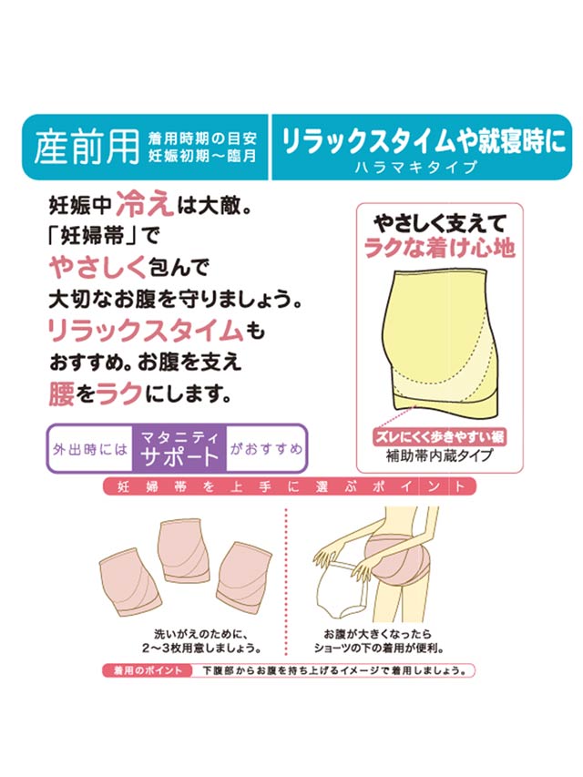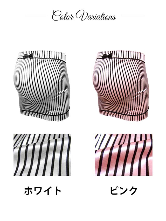 ギャルママの「こんなのほしい!」という声をカタチにしました♪スカート派のママやお部屋でのリラックスタイムにぴったりなサテンストライプ柄の妊婦帯です。「お腹を冷えから守る」「腰の負担をやわらげてくれる」そんなプレママにうれしいこと尽くめ♪腹巻きタイプなので、マタニティガードルに比べて、着脱しやすく、着心地もバツグン♪妊娠初期には、赤ちゃんを冷えから守り、後期には裏地のパワーネットでしっかりと赤ちゃんを支える&ママの腰の負担を軽減!立体裁断でつくっているので、ヒップラインもキレイにみせてくれます♪おうちにいるときは妊婦帯を、お出かけするときにはマタニティガードルを、シーンによって使い分けるのがオススメ◎