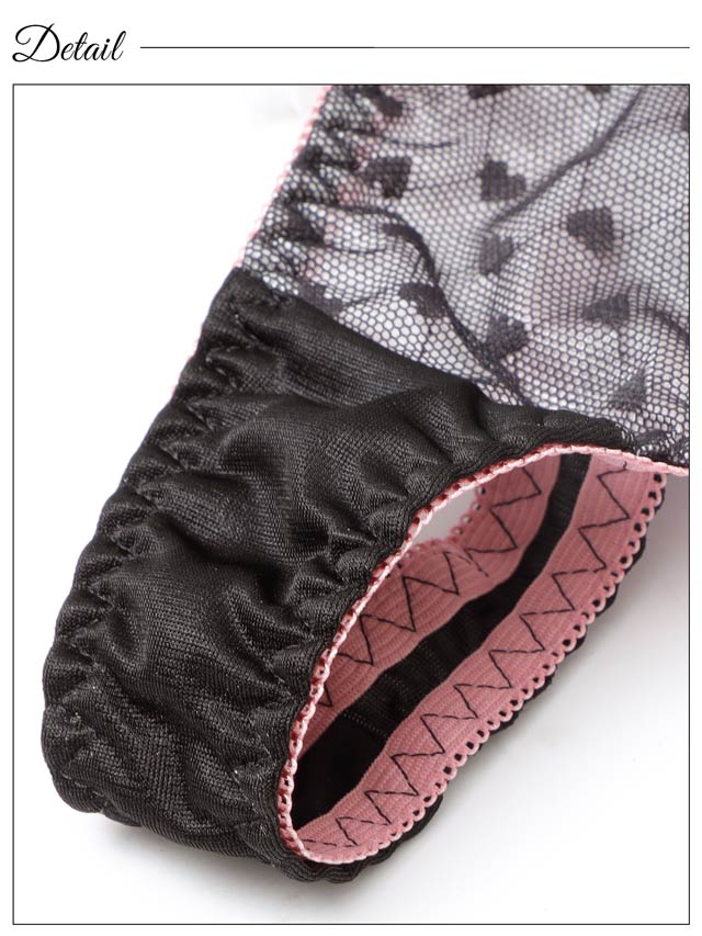 オールレースカットストリング育乳脇高ブラジャー&バック透けフルバックショーツ