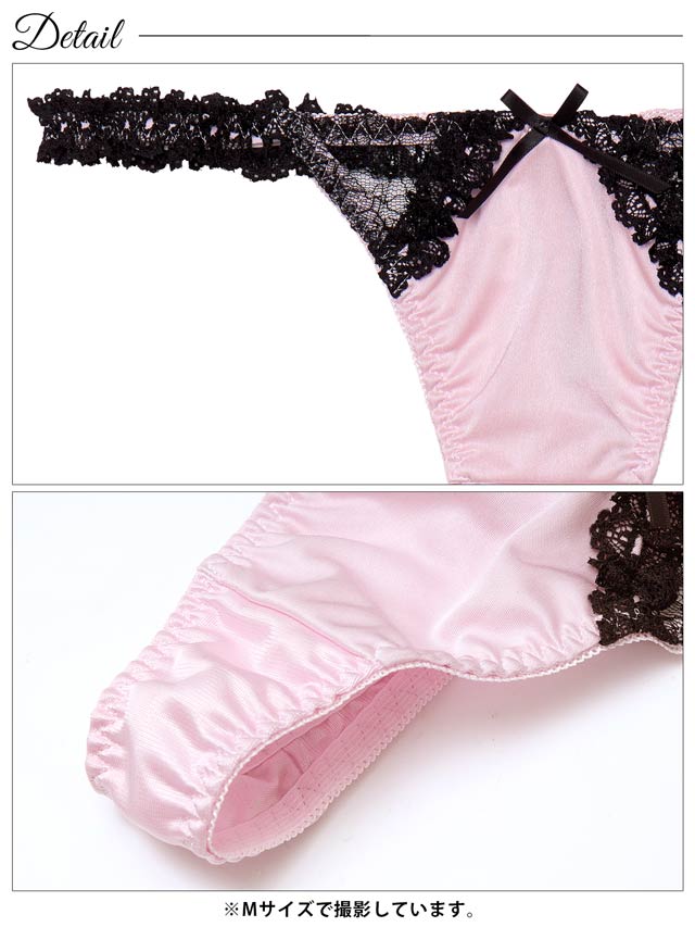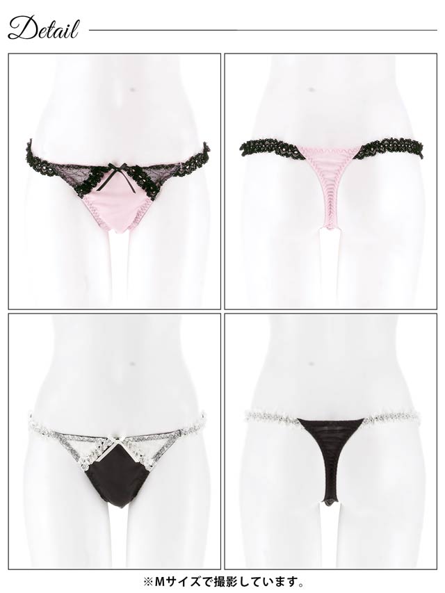 オールレースカットストリング育乳脇高ブラジャー&バック透けフルバックショーツ