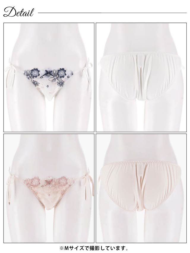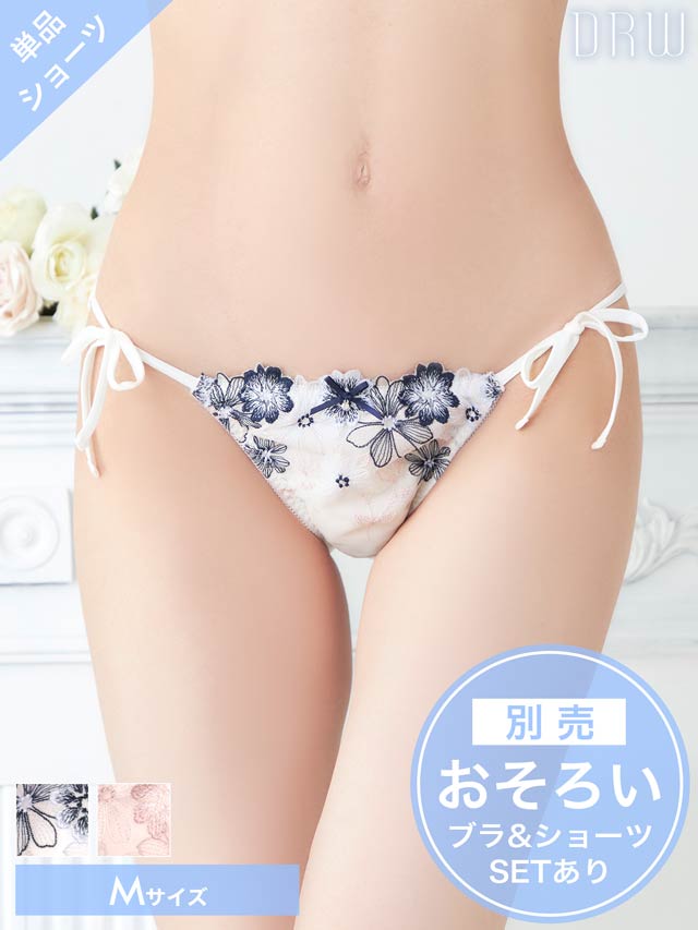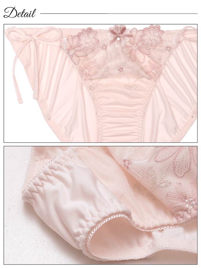 ダスティブルームエンブロイダリー育乳脇高ブラジャー&バック透けフルバックショーツ