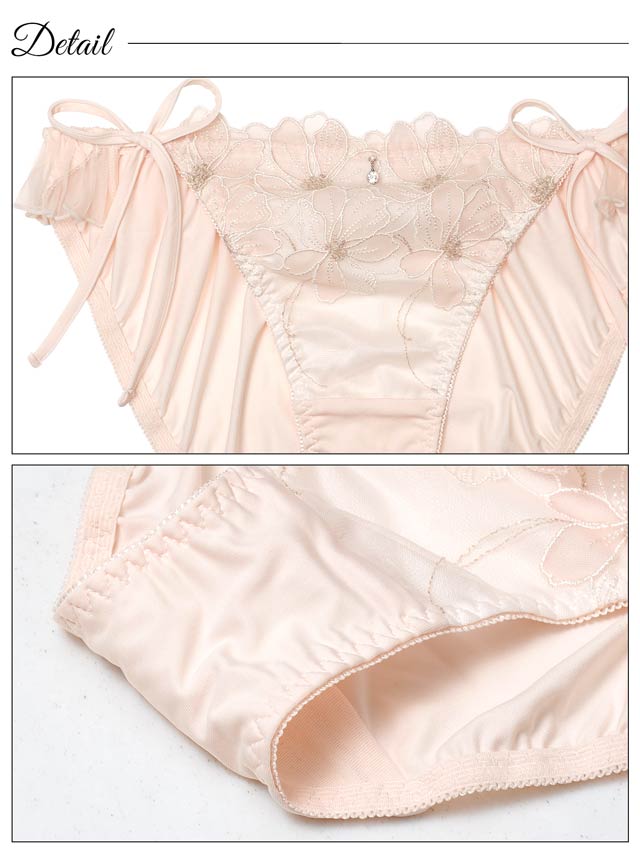 フローラルミューズ育乳脇高ブラジャー&バック透けフルバックショーツ