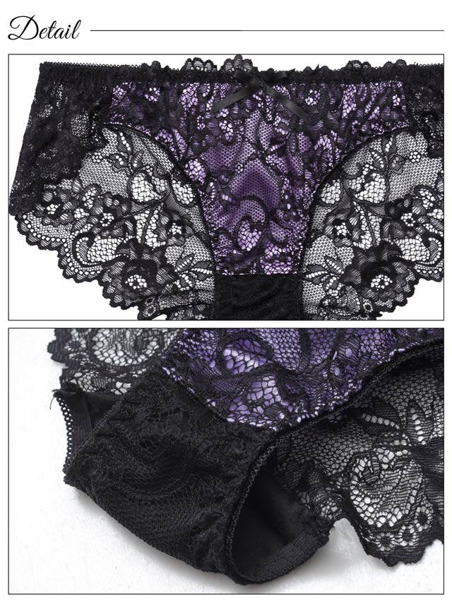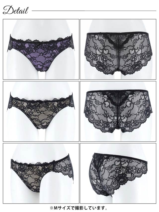 オールレースカットストリング育乳脇高ブラジャー&バック透けフルバックショーツ