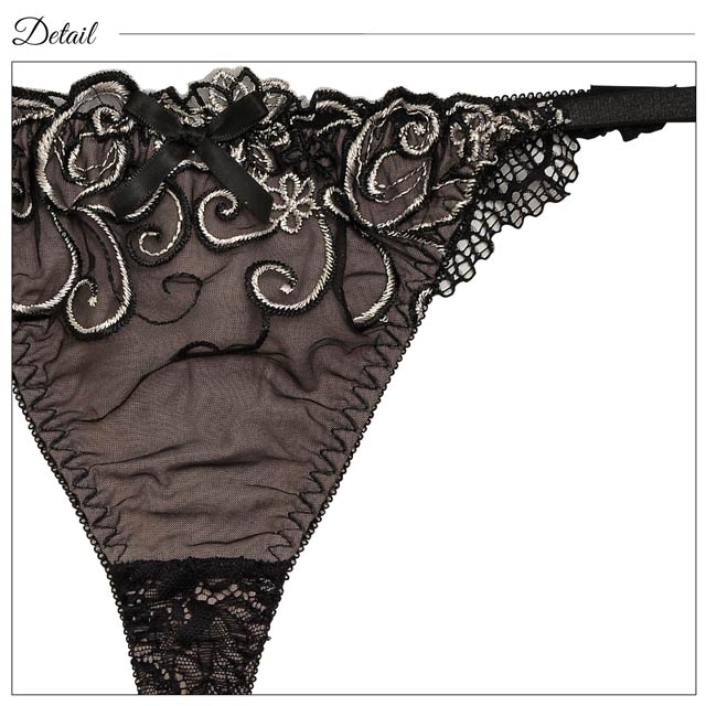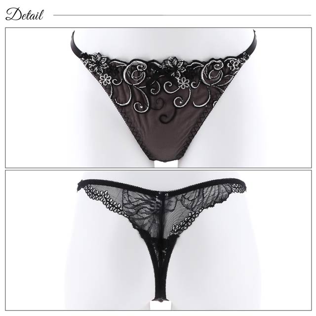オールレースカットストリング育乳脇高ブラジャー&バック透けフルバックショーツ