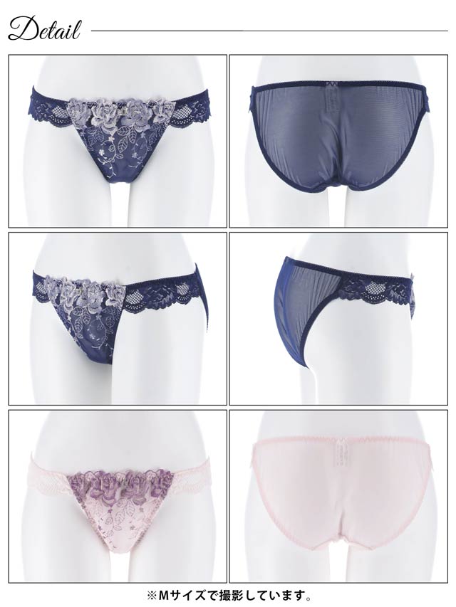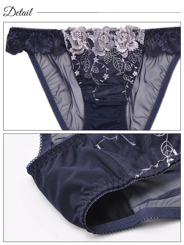 ダスティブルームエンブロイダリー育乳脇高ブラジャー&バック透けフルバックショーツ