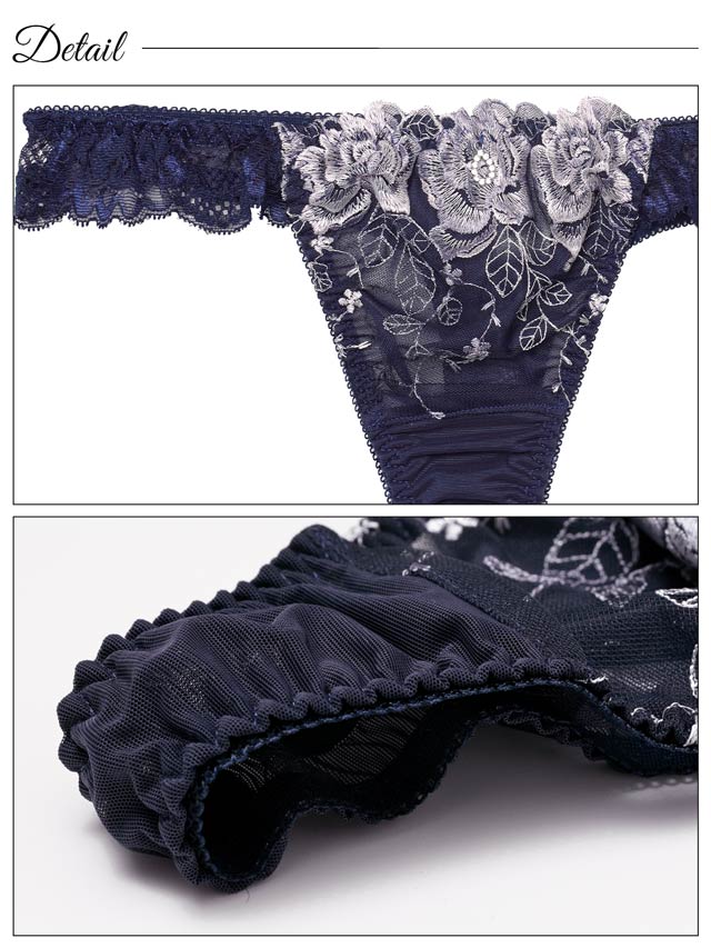 ダスティブルームエンブロイダリー育乳脇高ブラジャー&バック透けフルバックショーツ