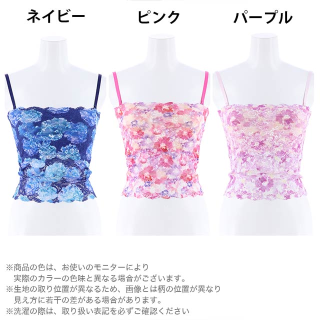 総レースのキャミソール。レース地のほんのりとした艶感がラグジュアリーな雰囲気を加速させます。バスト部には裏布と取り外しのできるカップがついているので、1枚でさらりと着ることも可能。おそろいのランジェリーとの組み合わせもオススメです。