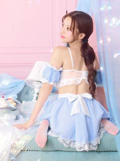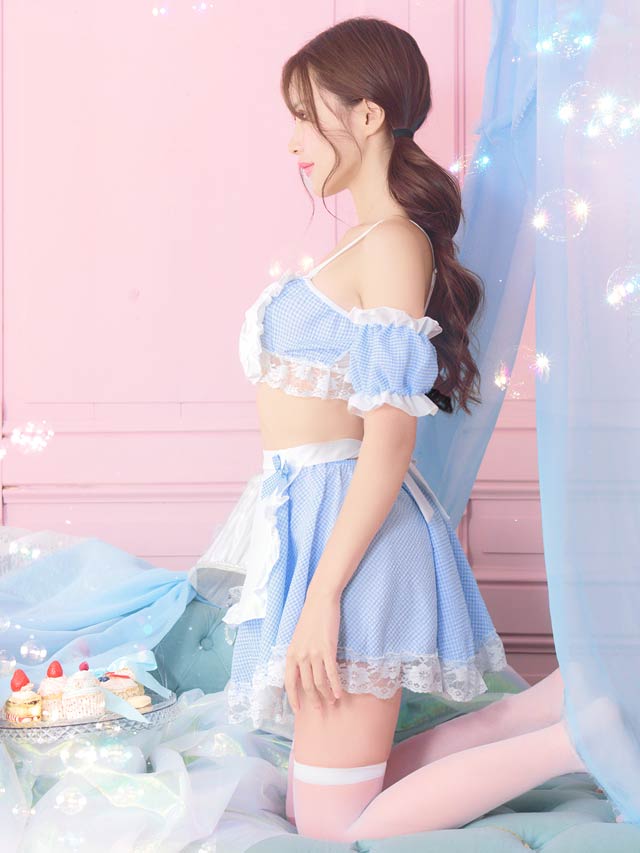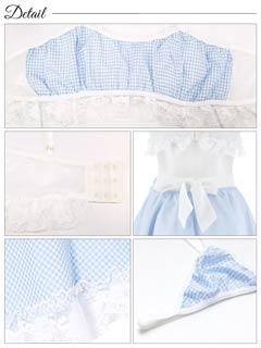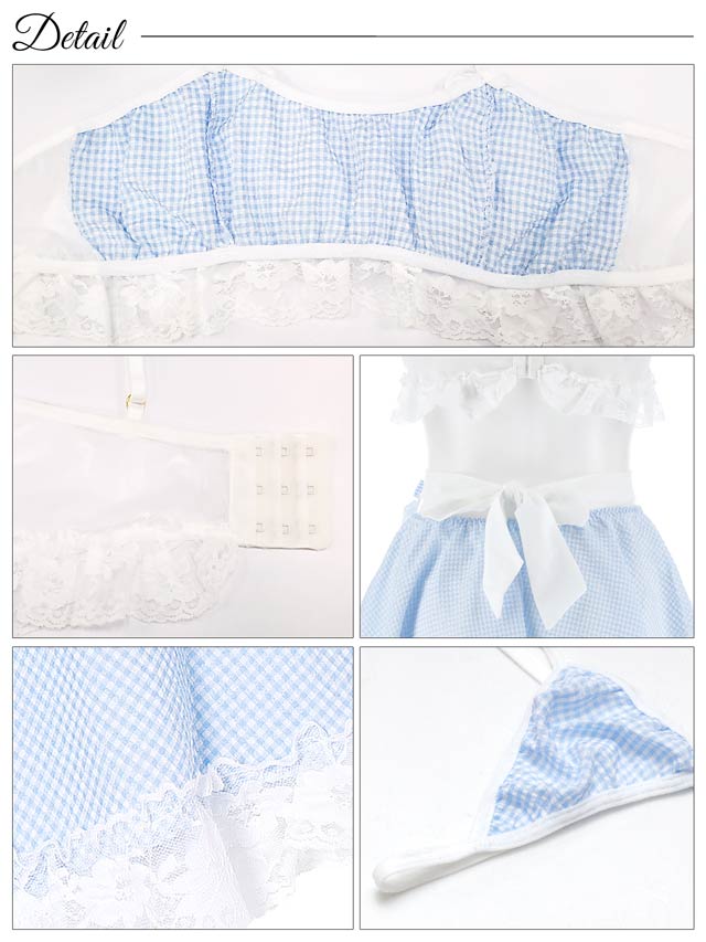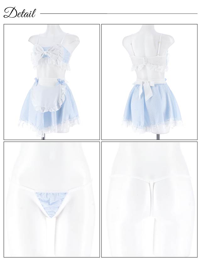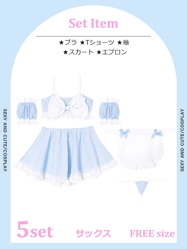 [5点セット]ギンガムチェックリボンメイドコスプレランジェリー