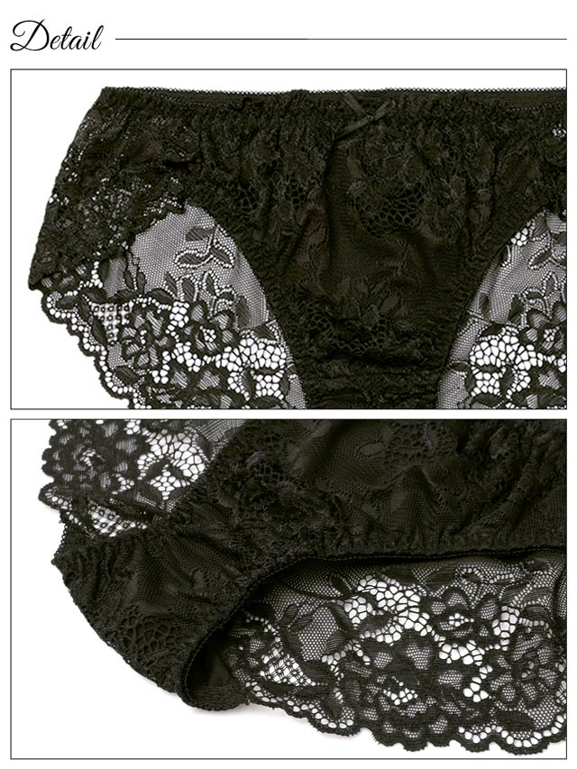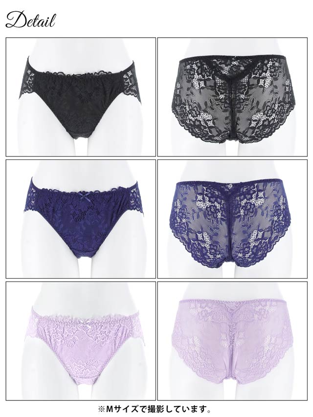 オールレースカットストリング育乳脇高ブラジャー&バック透けフルバックショーツ