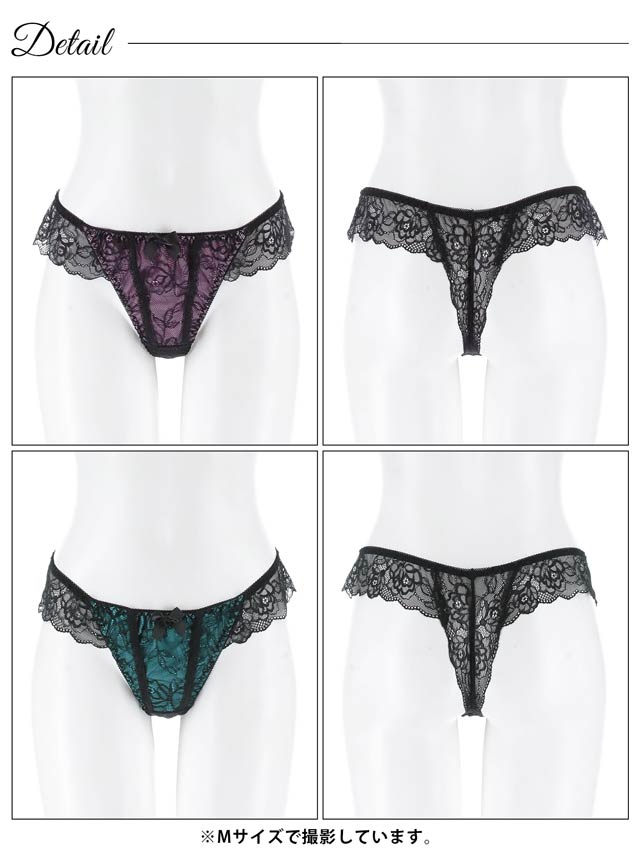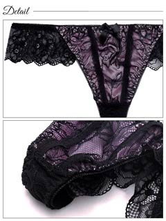 オールレースカットストリング育乳脇高ブラジャー&バック透けフルバックショーツ
