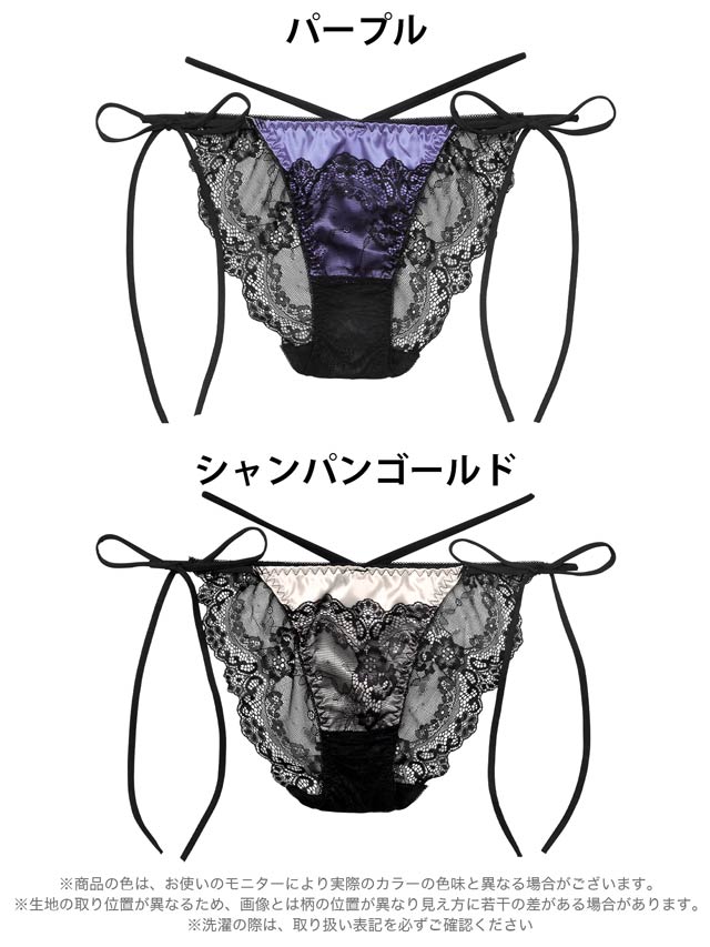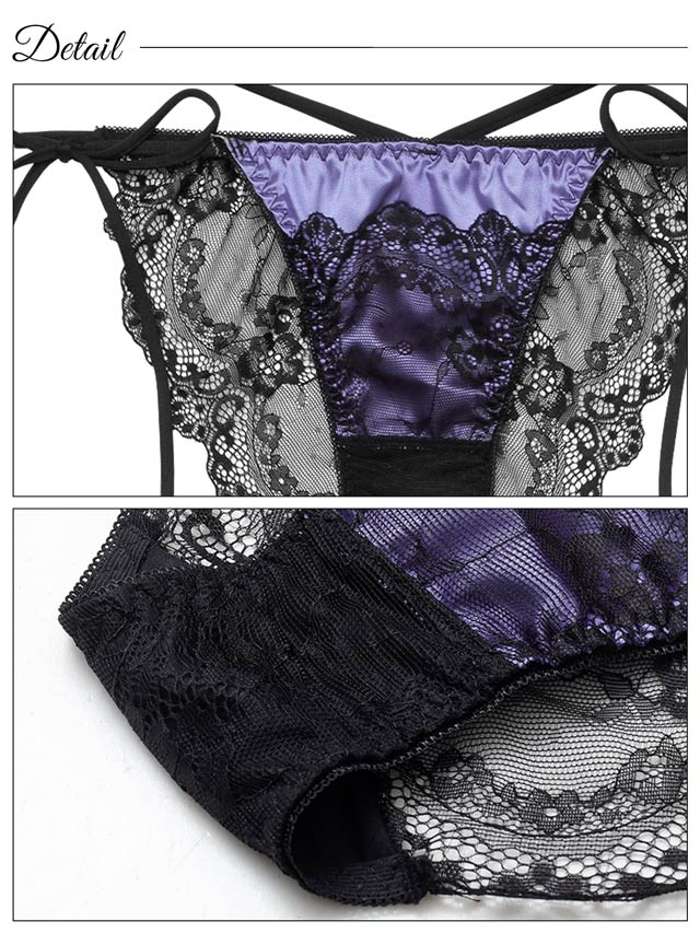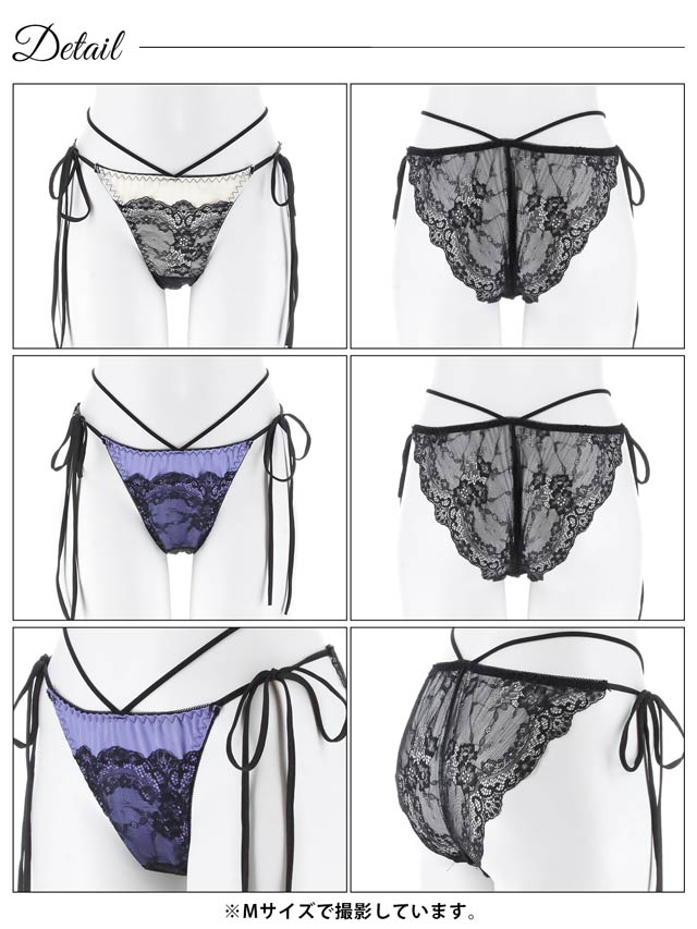オールレースカットストリング育乳脇高ブラジャー&バック透けフルバックショーツ