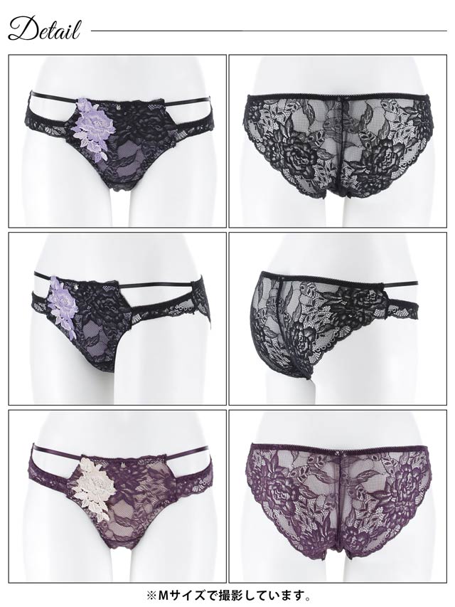 オールレースカットストリング育乳脇高ブラジャー&バック透けフルバックショーツ