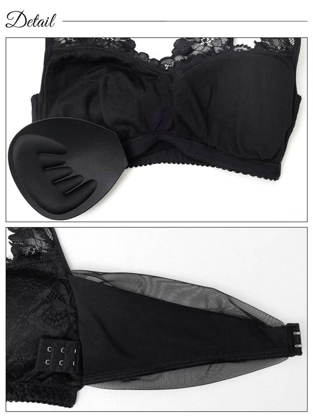 オールレースカットストリング育乳脇高ブラジャー&バック透けフルバックショーツ