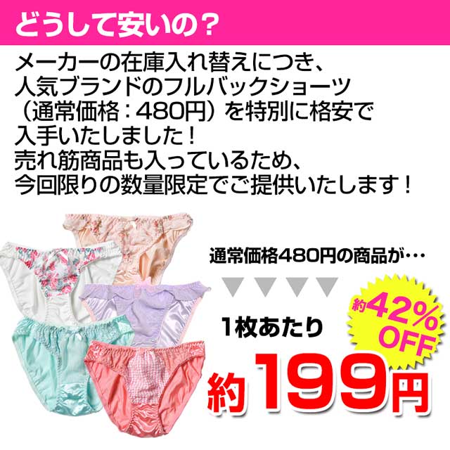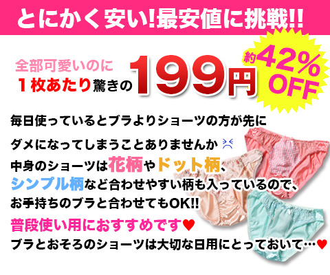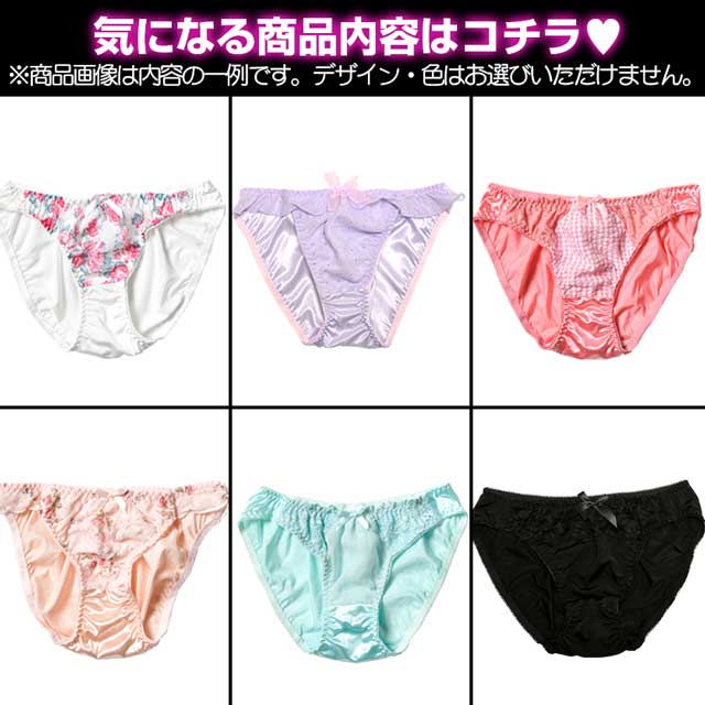 店長おまかせ!アソート5種類のショーツが入った福袋★:・とってもカワイイのでオススメです!CUTE~SEXYまで詰め込んだ特別なショーツ単品福袋が誕生!ブラ&ショーツセットで購入してもショーツが先にダメになることってありませんか?そんな時は、普段使いはこっちのショーツで(おそろいのショーツを長持ちさせましょ♪)福袋の中身は花柄やドット、ストライプ、シンプル柄まで勢ぞろいなのでお手持ちのブラに合わせて履いてもOKだよ!