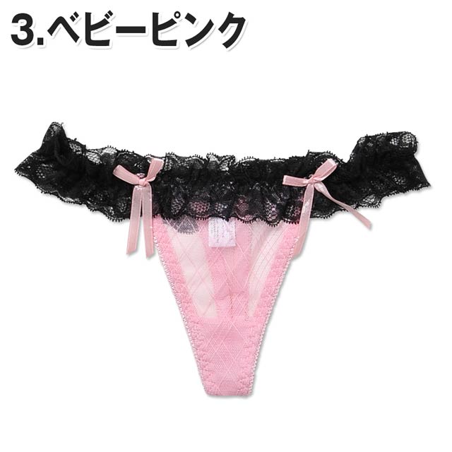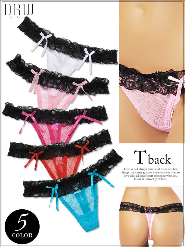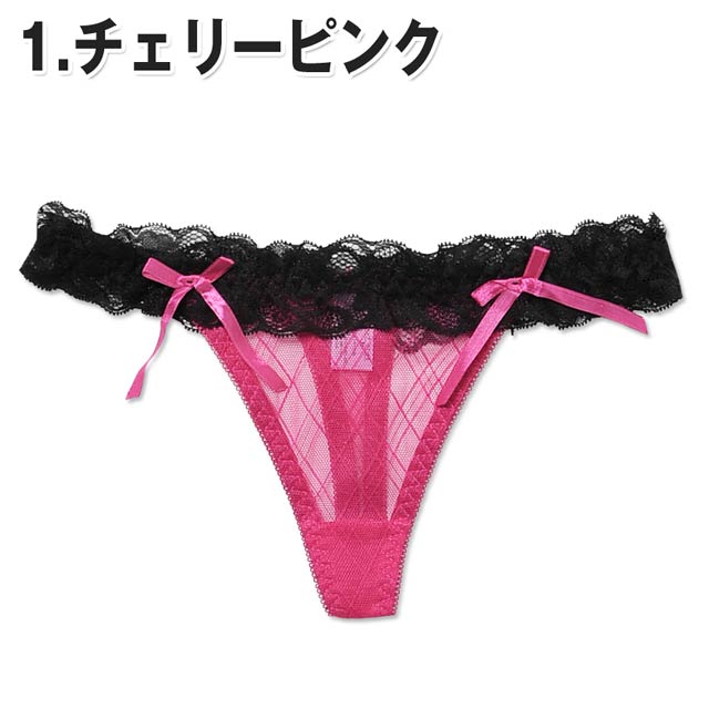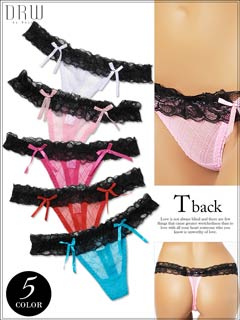 【Reinest】シックレーシィコードリングブラジャー&バック透けTバックショーツ