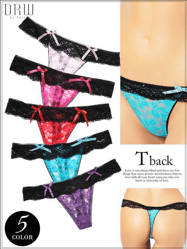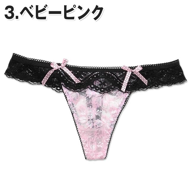 透け花柄レースTバックショーツ単品