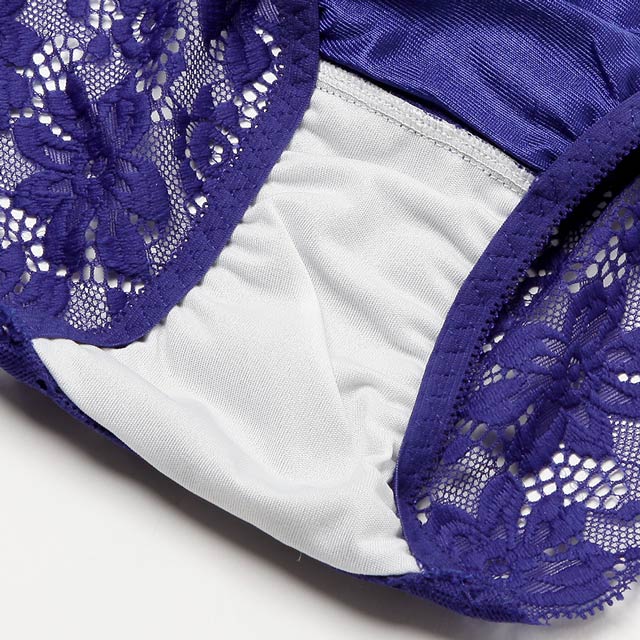 艶サテンxホワイトレースブラジャー&フルバックショーツ&Tバック&サニタリー/CUTE
