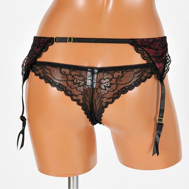 オールレースカットストリング育乳脇高ブラジャー&バック透けフルバックショーツ