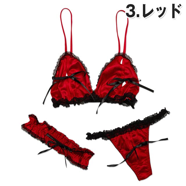 オールレースカットストリング育乳脇高ブラジャー&バック透けフルバックショーツ