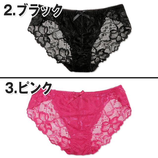 オールレースカットストリング育乳脇高ブラジャー&バック透けフルバックショーツ