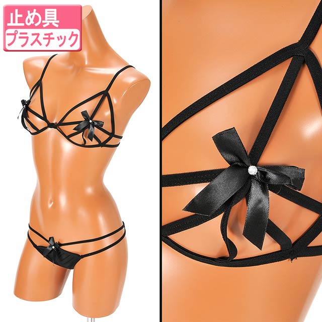 【Reinest】シックレーシィコードリングブラジャー&バック透けTバックショーツ