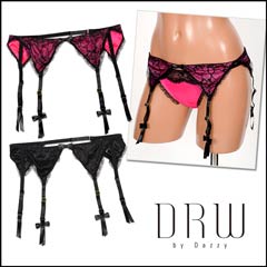 フェミニンレースxシャイニーサテンブラジャー&フルバックショーツ