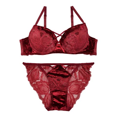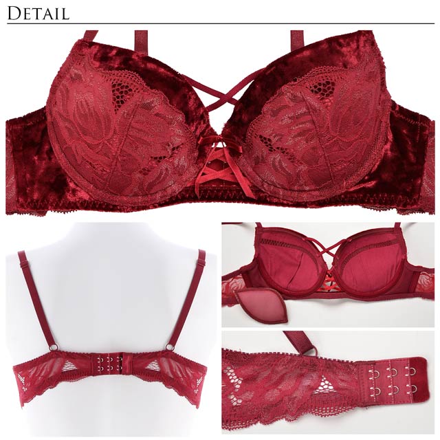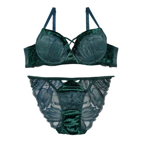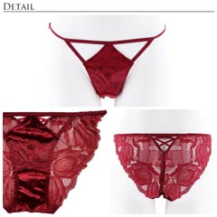 オールレースカットストリング育乳脇高ブラジャー&バック透けフルバックショーツ