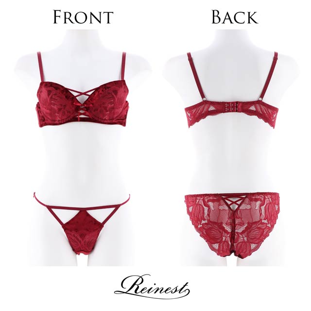 【Reinest】ローズエンブロイダリークロスコードブラジャー&バック透けフルバックショーツ