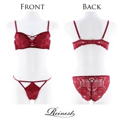 【Reinest】シックレーシィコードリングブラジャー&バック透けTバックショーツ